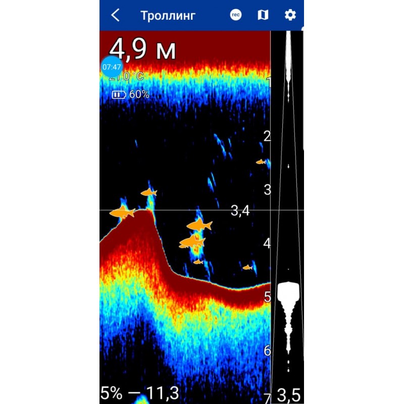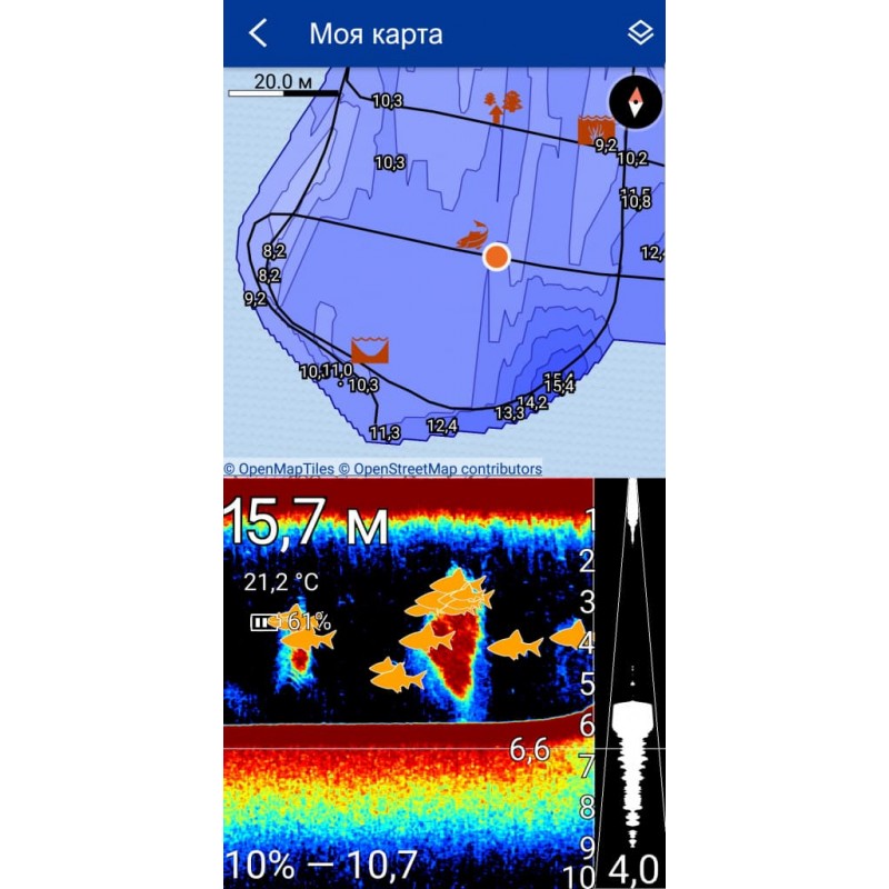 Отображение рельефа дна и указатель плотности грунта