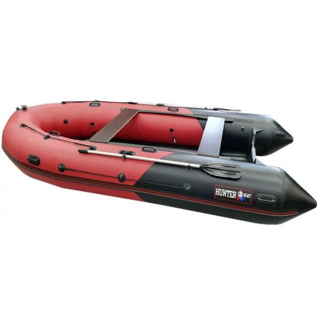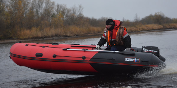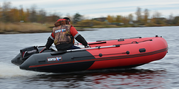 Надувная лодка Хантер 420 ПРО со стационарным вклеенным умеренно-килевым дном низкого давления (НДНД) рассчитана на использование с мотором до 30 л.с. с максимальной загрузкой до 950 кг. Предназначена для рыбалки, охоты и активного отдыха на воде небольшой компанией. Выпускается в комбинированном красно/черном цвете.