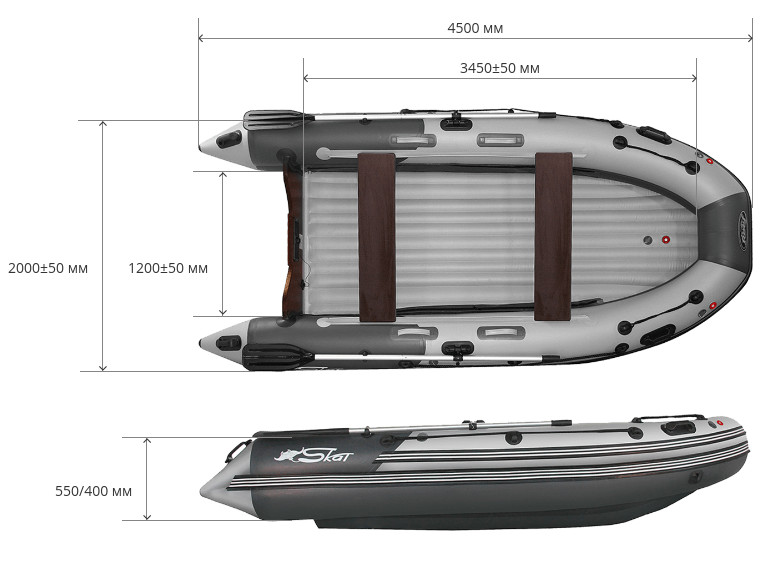Модель Скат Тритон оснащена трехкилевым днищем катамаранного типа, что придает большую устойчивость на воде и лучшую управляемость, значительно повышая скоростные характеристики.