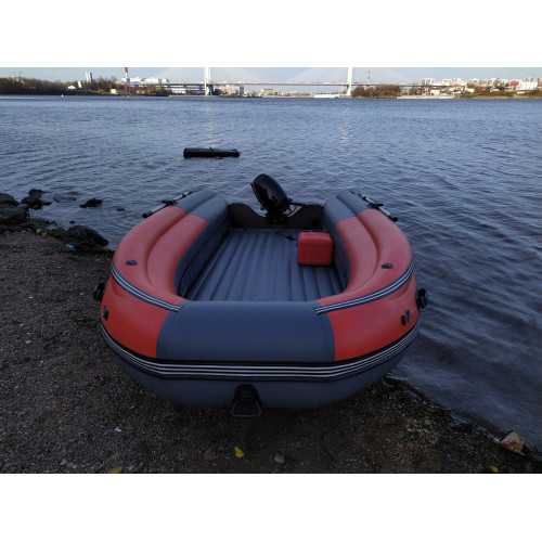 Корпус лодки ПВХ состоит из двух надувных своеобразных баллонов диаметром 55 см., разделенных на четыре независимых отсека + дно, таким образом, чтобы в случае выхода из строя одного из отсеков лодка сохраняла положение равновесия.