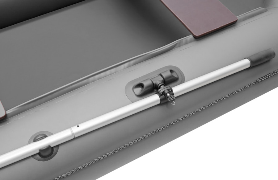 Лодка оснащена леерными поясами, каждый из которых растянут по внешней стороне борта лодки между двух шайб. Данная модель комплектуется разборными веслами с пластиковой фурнитурой и поворотными уключинами.