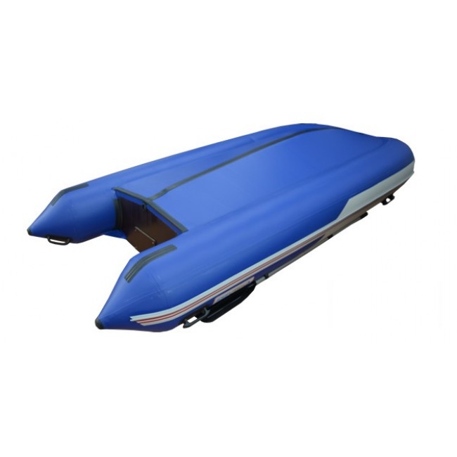 Надувная лодка СТЕЛС 355 изготовлена и ПВХ ткани плотностью 950 гр/м.кв., и представлена в современном дизайне и комбинированном сине/белом цвете.