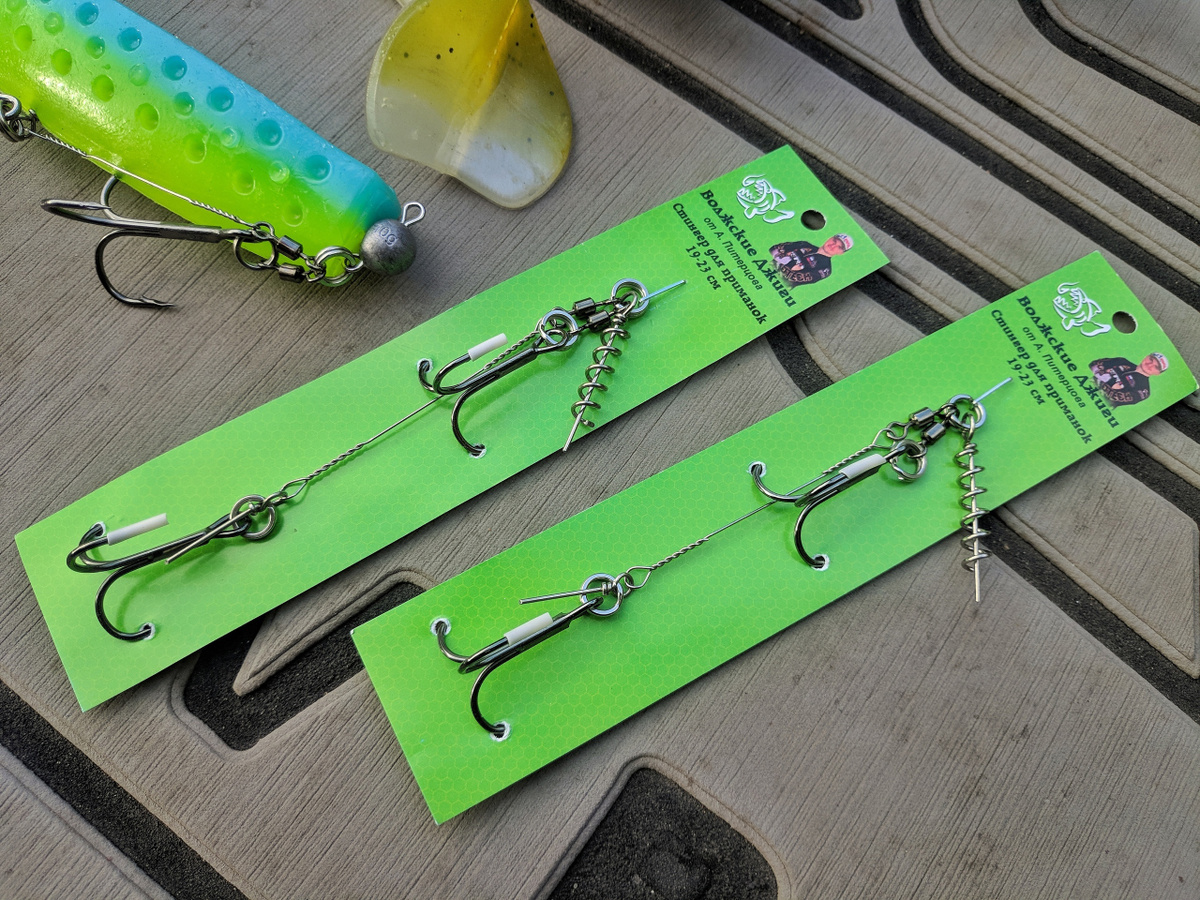 Стингеры Волжские джиги — для оснащения крупных силиконовых приманок. При изготовлении используется высококачественная надежная фурнитура: крючки, вертлюги и заводные кольца.