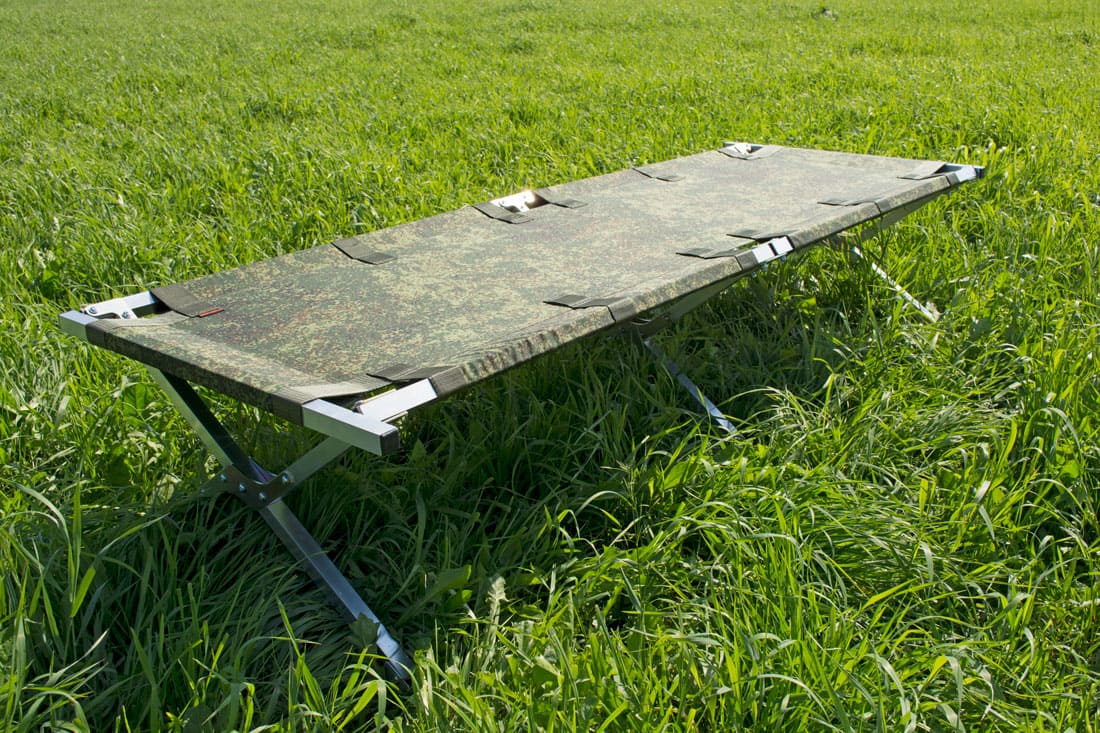 Также, при установке раскладушки в зимней палатке или на рыбалке важной особенностью станет наличие подпятников в нижней части каркаса. Такие подпятники предотвратят порчу тента и делают туристическую раскладушку более устойчивой.