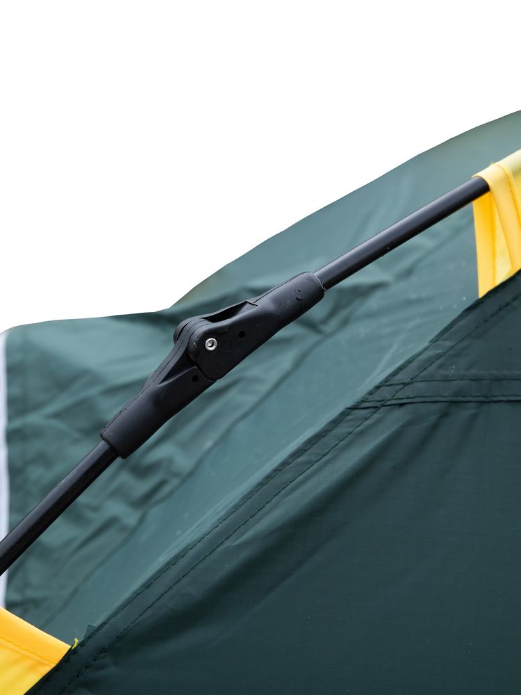 Удобство установки во время дождя (сначала ставится тент, а затем под прикрытием пристегивается внутренняя палатка, которая остается сухой).