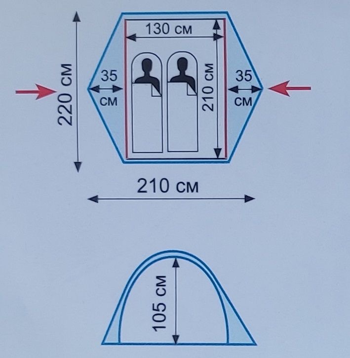 Наружные дуги сильнее натягивают наружный тент, за счет чего конденсант быстрее скатывается по внутренней поверхности, не затекает в спальный отсек.