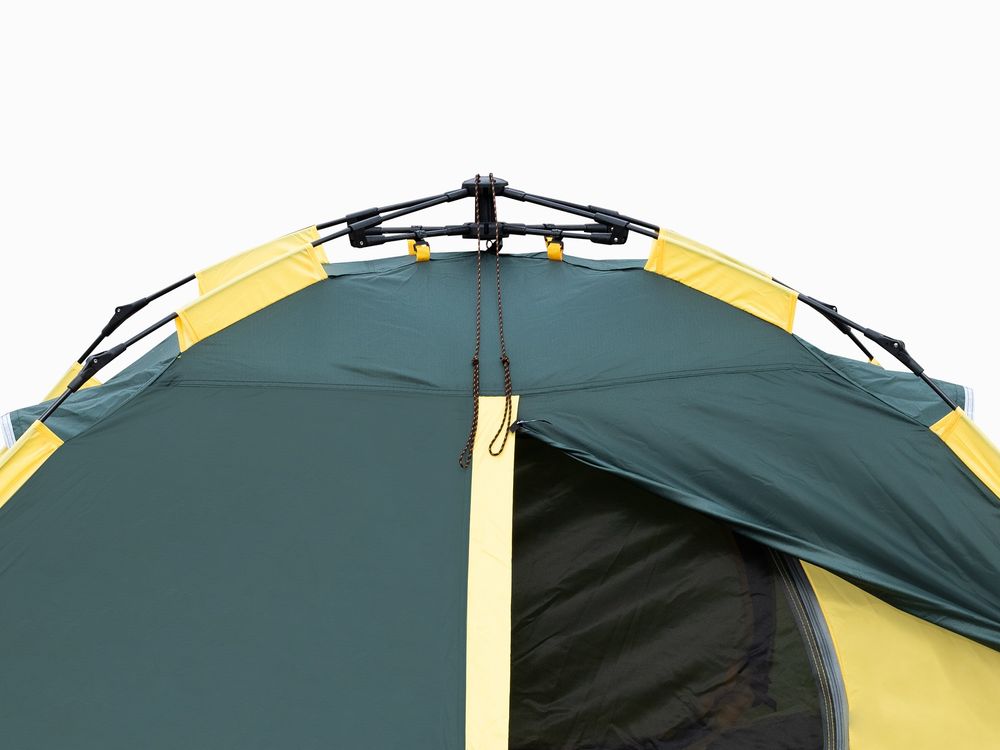 - потяните за шнур автоматического механизма в верхней части палатки и зафиксируйте его.
