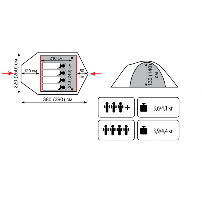 Очень хорошая палатка, просторная, уютная. Хватает на 4-х человек.