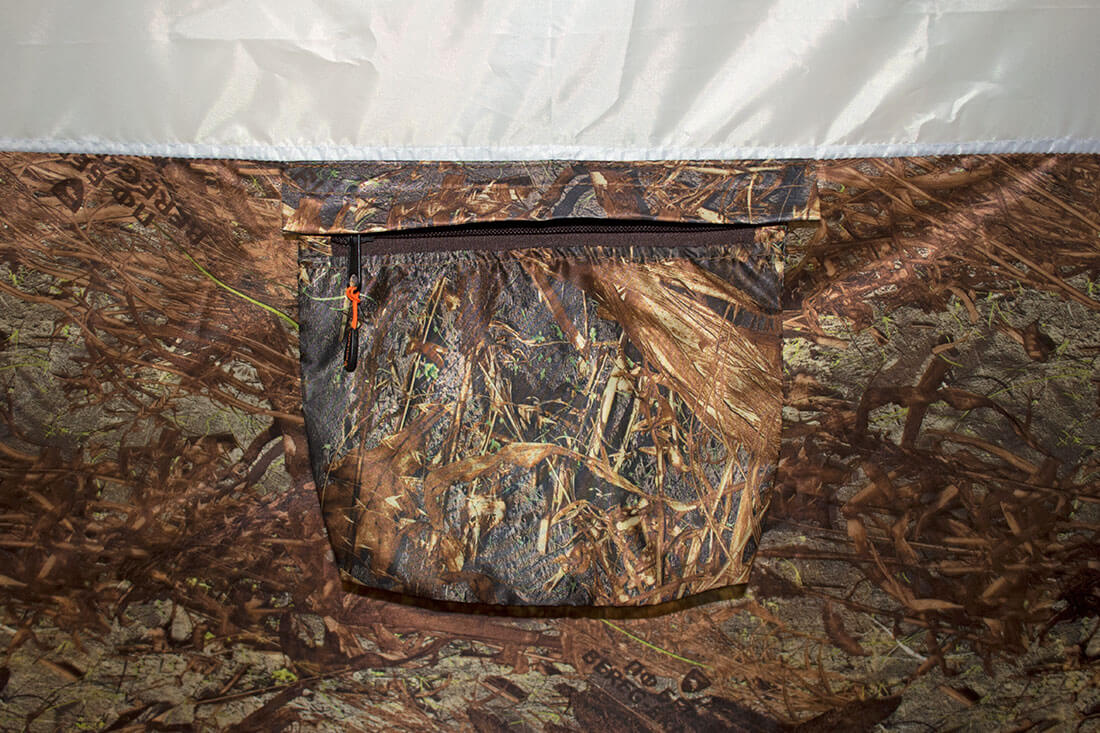 В нижней части палатки находится защитная юбка с оттяжными петлями для крепления кольев. Оттяжные петли на внешнем тенте Берег УП-2 оснащены кармашками и выполнены с использованием светоотражающих элементов.