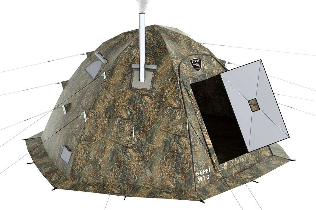 Палатка Берег УП-2 является всесезонной, что позволяет использовать жилой модуль совместно с печами длительного горения. Для максимальной безопасности, стенка внутри палатки (в месте установки печи) дополнительно оборудована съемной термостойкой тканью, способной выдерживать температуру до +1200 °C. Разделка дымохода в крыше палатки Берег УП-2 представляет собой вставку из той же термостойкой ткани с кольцом из нержавеющей стали. Такая конструкция исключает возможность контакта горячей трубы с тканью палатки, увеличивая пожаробезопасность палатки. Термостойкая ткань с силиконовой пропиткой не подвержена воздействию влаги и не поддерживает горения.