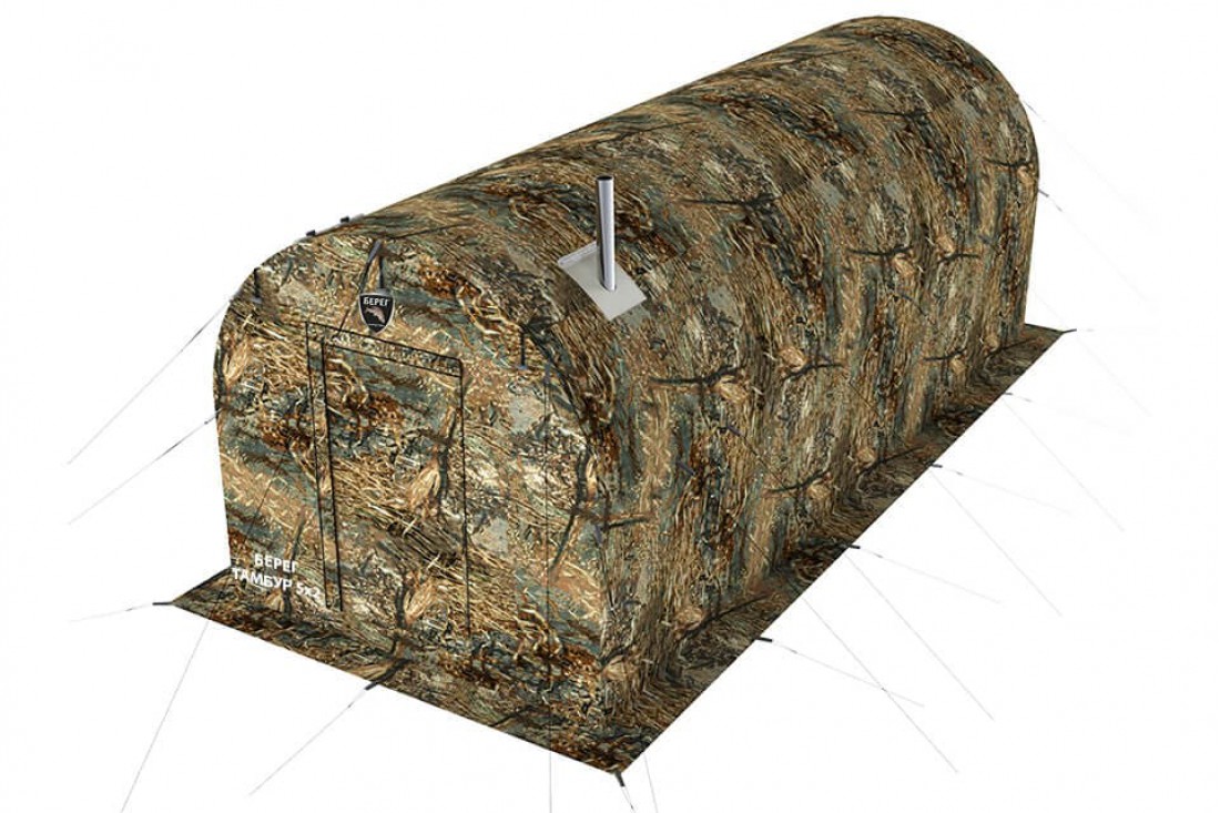Тамбур Берег 5х2 предназначен для использования в паре с палаткой УП для увеличения жилого помещения, а также для использования в качестве: бани или предбанника, гаража для спецтехники (квадроцикл, снегоход), укрытия, самостоятельной палатки, карповой палатки, кухни и т.д