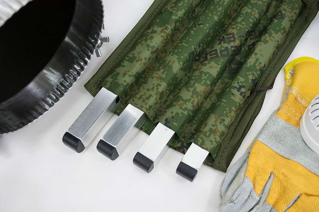 Съемные ножки на барашковых винтах придают походной печке достаточную высоту и устойчивость, обеспечивая необходимую пожарную безопасность при использовании в палатке, а также упрощают транспортировку.
