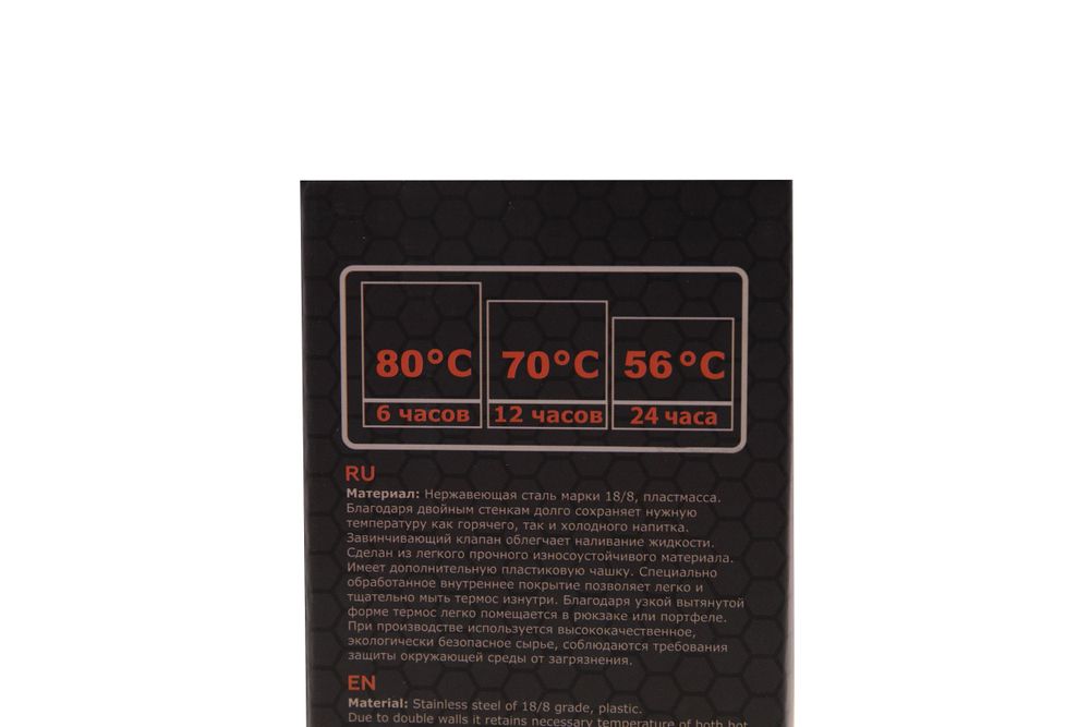 Благодаря узкой вытянутой форме термос легко помещается в рюкзаке или портфеле.