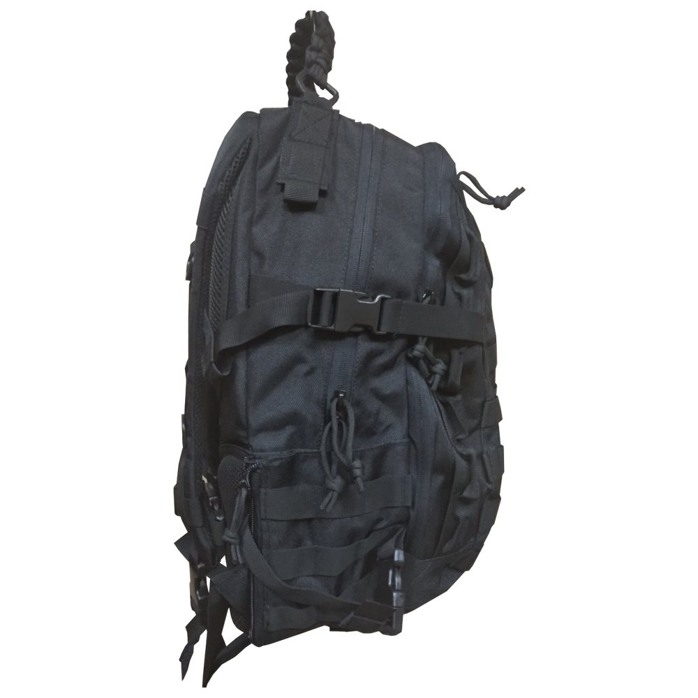 - Верхняя ручка для переноски сплетена из паракордового шнура и усилена двойной строчкой, а под ней сделаны слоты в виде отверстий под выход радиоантенны или шланга гидратора.