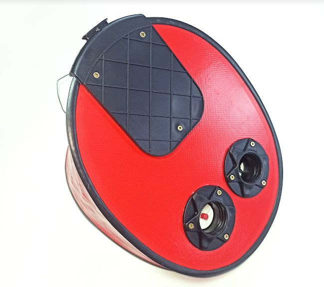 Ножной насос 5 литров, материал плоской поверхности состоит из фанеры, что в отличии от ломающегося пластика гарантирует большую долговечность. Насосы из фанеры очень ценятся рыбаками и охотниками. В комплекте с насосом идет гофра-шланг.