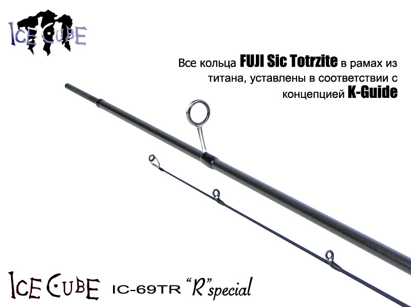 Новая модель Ice Cube IC-69TR сохранила прежнюю длину, получила кольца TORZITE в титановой раме, обливной тюльпан и усиленную вклейку на более мощном шпиготе (solid TopDia 0.8 mm), которая существенно увеличила ресурс снасти в целом. Размер колец, учитывая специфику ловли при устойчивом минусе, теперь можно смело назвать зимним. Идеально ровная поверхность вставок TORZITE, также существенно уменьшает эффект обмерзания колец.