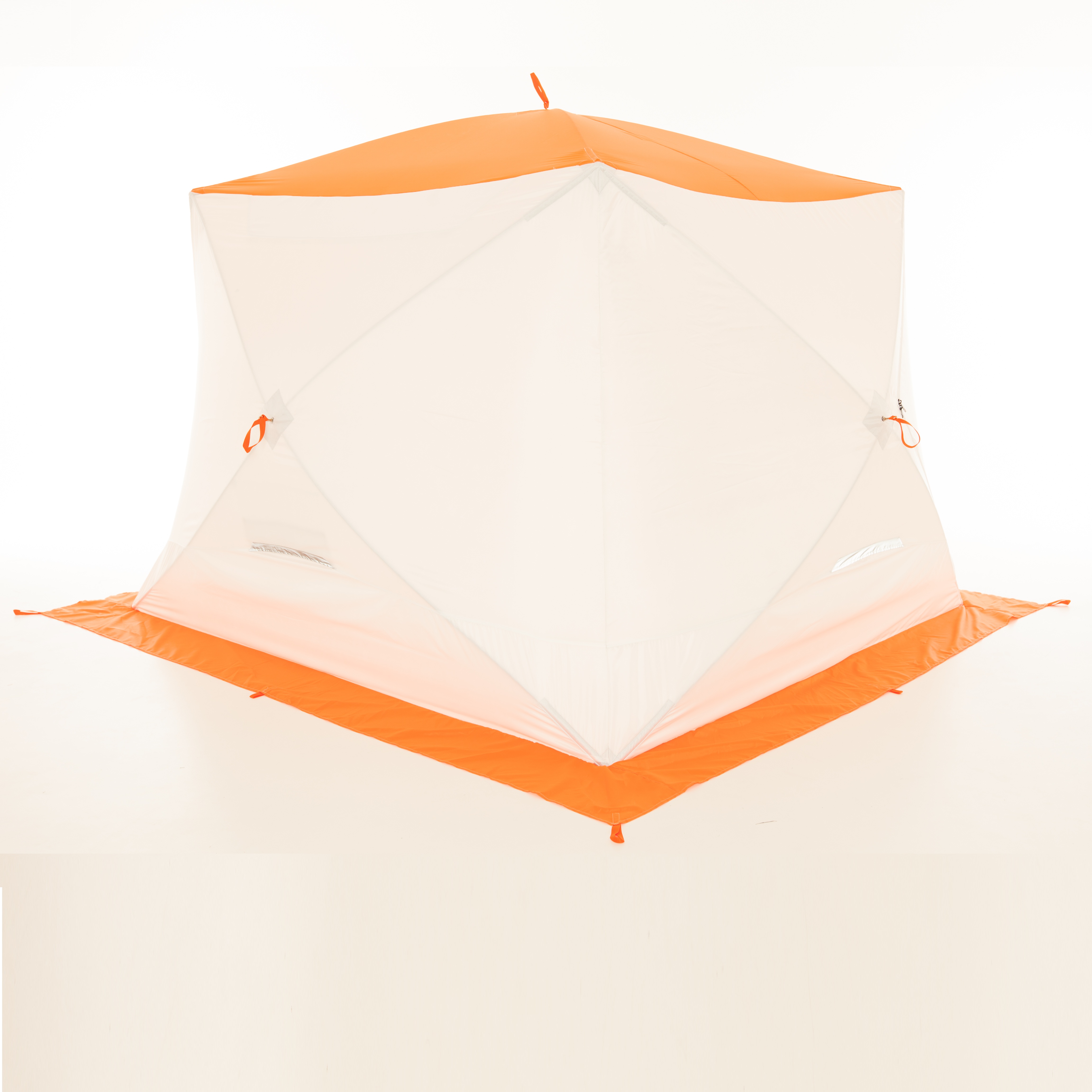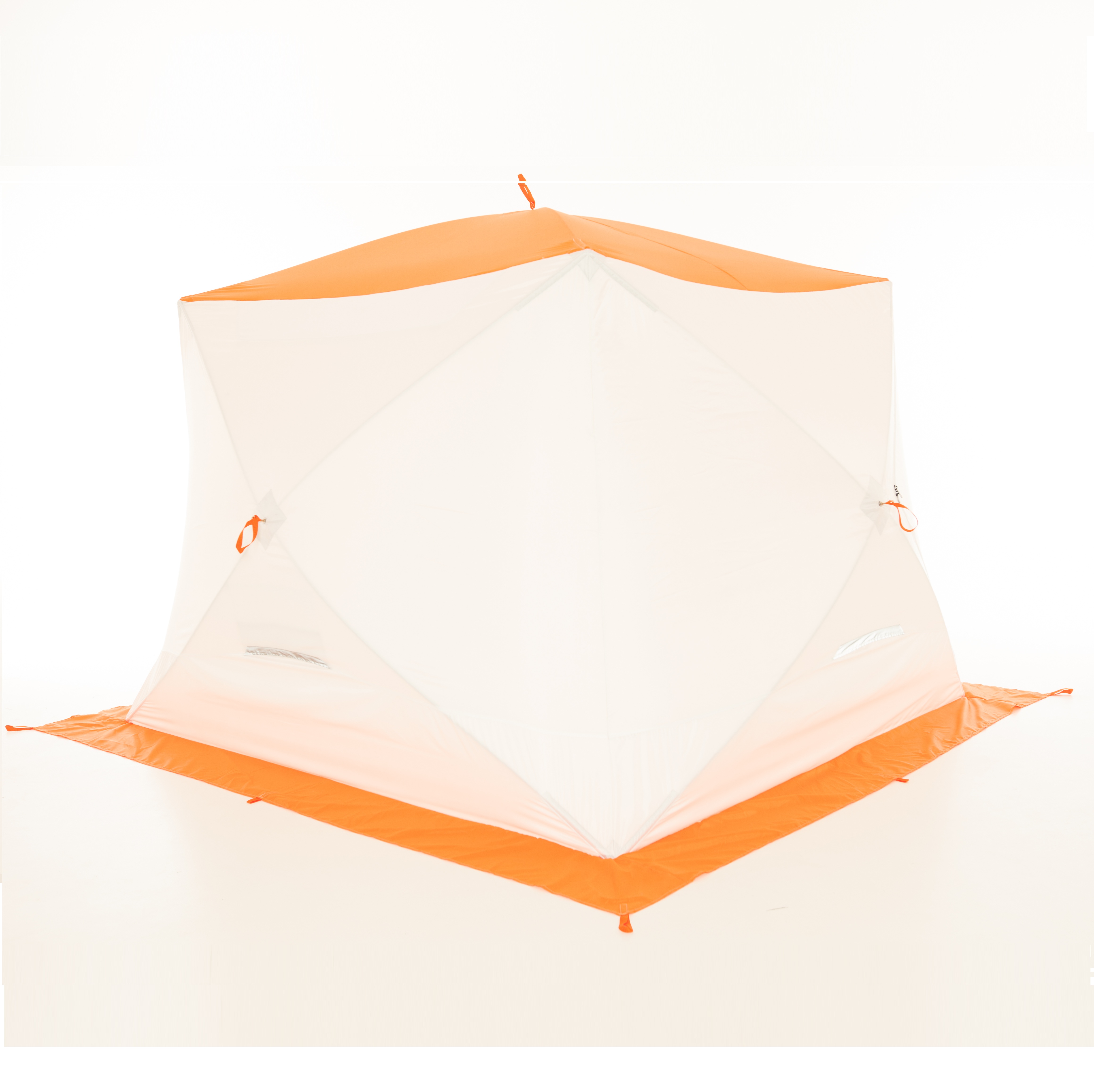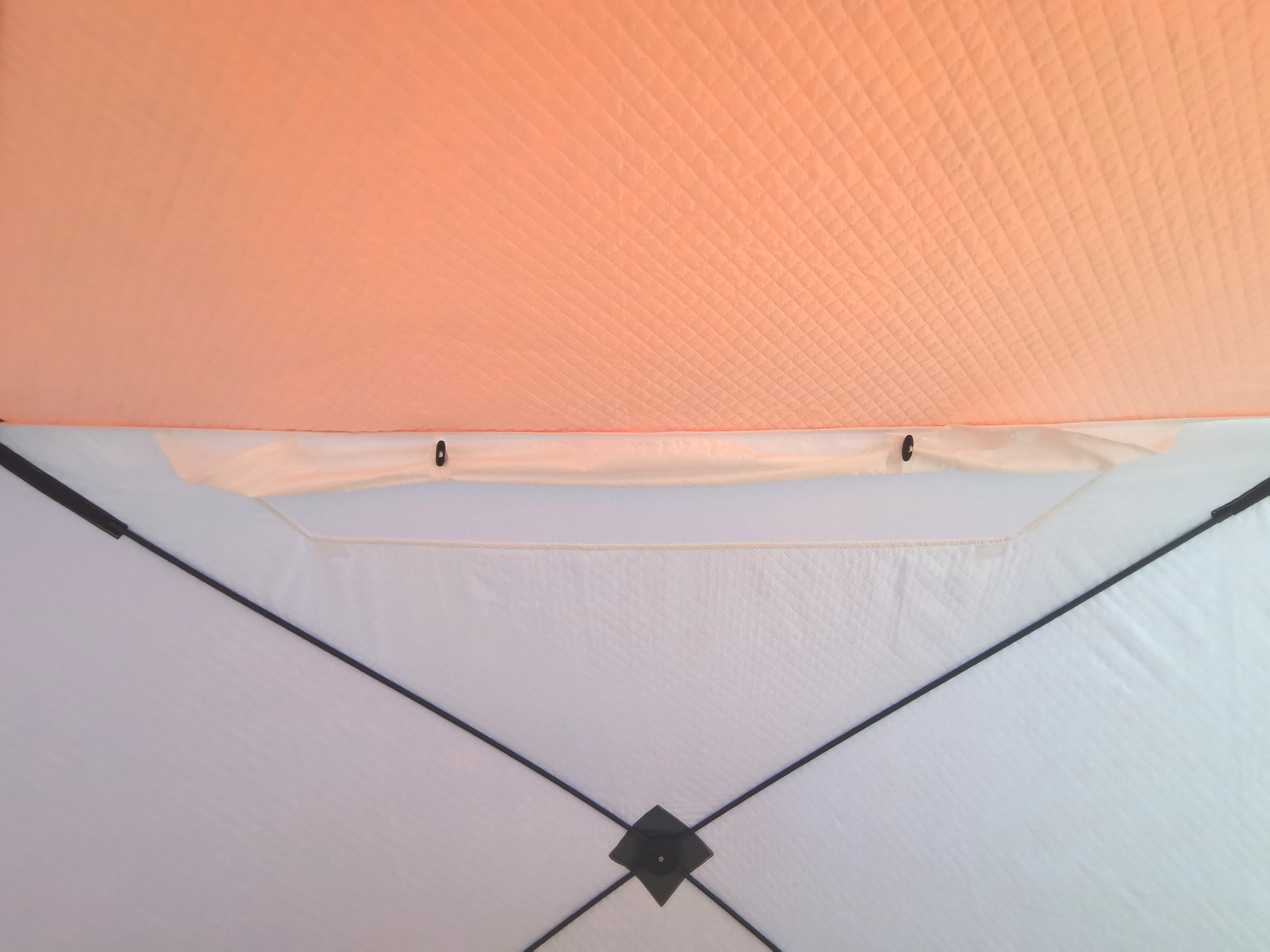 5.При креплении укрытия на льду распределять растяжки симметрично по всему периметру, что поможет избежать перекоса и чрезмерной нагрузки на молнию входной двери.