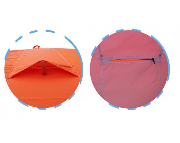 В нашей палатке все продумано для мелочей. Например, клапаны для вентиляции снаружи имеют жесткие опорные крепления, которые не дают козырьку закрыться.